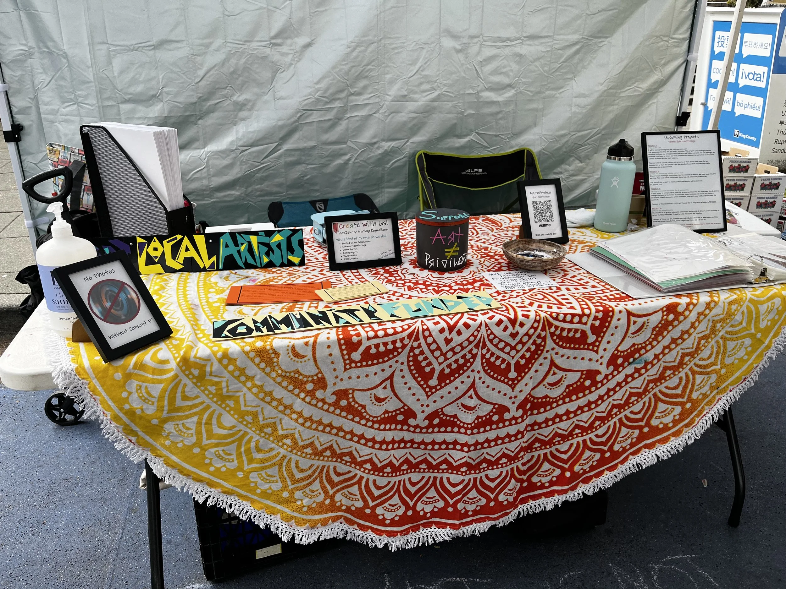 In honor of the last day of Dia de los Muertos at Harvest market, we designed sugar skull cut outs. Art is Not A Privilege shared our personal ofrenda honoring the babies we have lost, our dog and the Palestinians and Congolese lives that have been starved, tortured, slaughtered, raped and humiliated from an ethnically cleansing, occupied apartheid regime